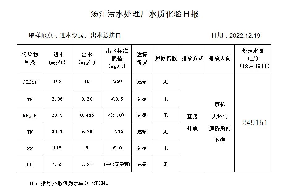 汤汪污水处理厂水质化验日报(2022.12.19)