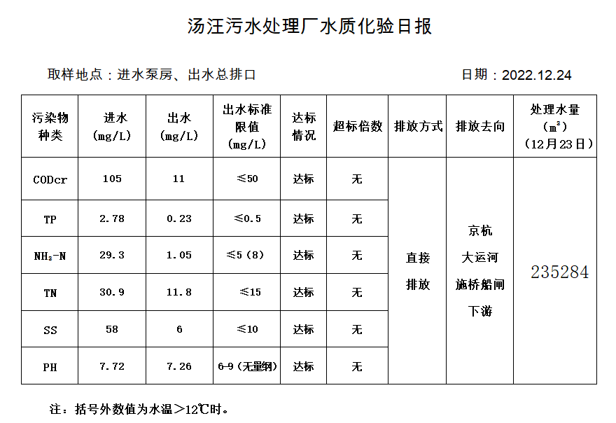 汤汪污水处理厂水质化验日报(2022.12.24)