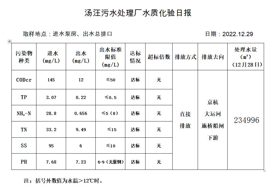 汤汪污水处理厂水质化验日报(2022.12.29)