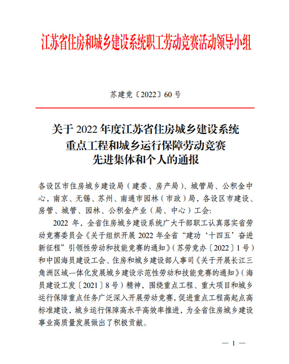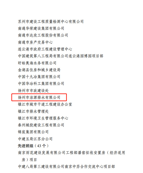12月30日,从江苏省住房和城乡建设系统职工劳动竞赛活动领导小组传来喜讯,扬州市洁源排水有限公司被表彰为“2022年度江苏省住房城乡建设系统重点工程和城乡运行保障劳动竞赛先进集体”。