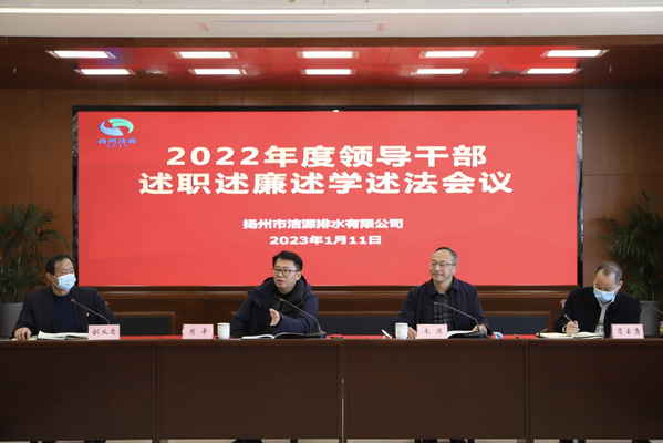 1月11日上午,洁源排水公司召开2022年度领导班子和领导人员年度考核会。市城控集团副总经理周平,集团考核组成员,洁源排水公司领导班子成员、中层干部和职工代表参加会议。