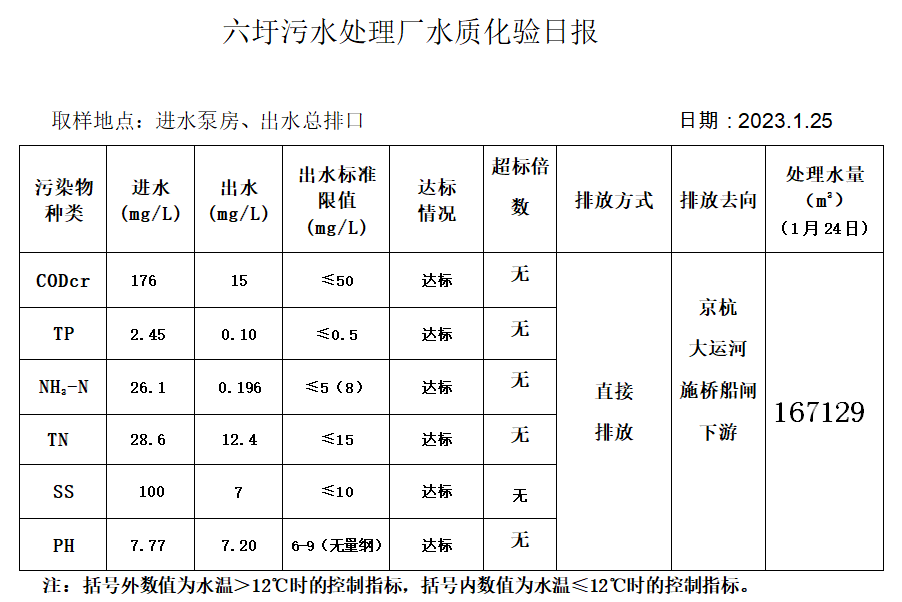 六圩污水处理厂水质化验日报(2023.1.25)
