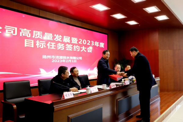 2月1日下午,洁源排水公司组织召开高质量发展暨2023年度目标任务签约大会,公司领导班子全体成员、全体中层干部及职工代表参加会议。