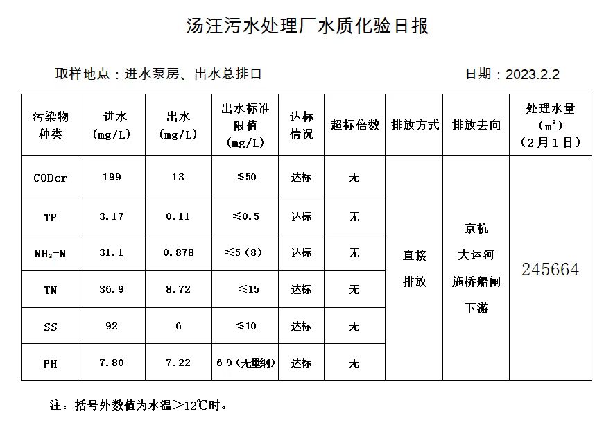 汤汪污水处理厂水质化验日报(2023.2.2)