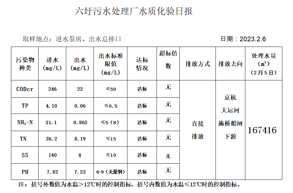 六圩污水处理厂水质化验日报(2023.2.6)