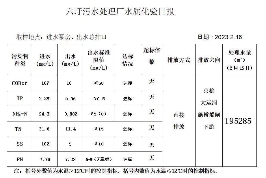 六圩污水处理厂水质化验日报(2023.2.16)
