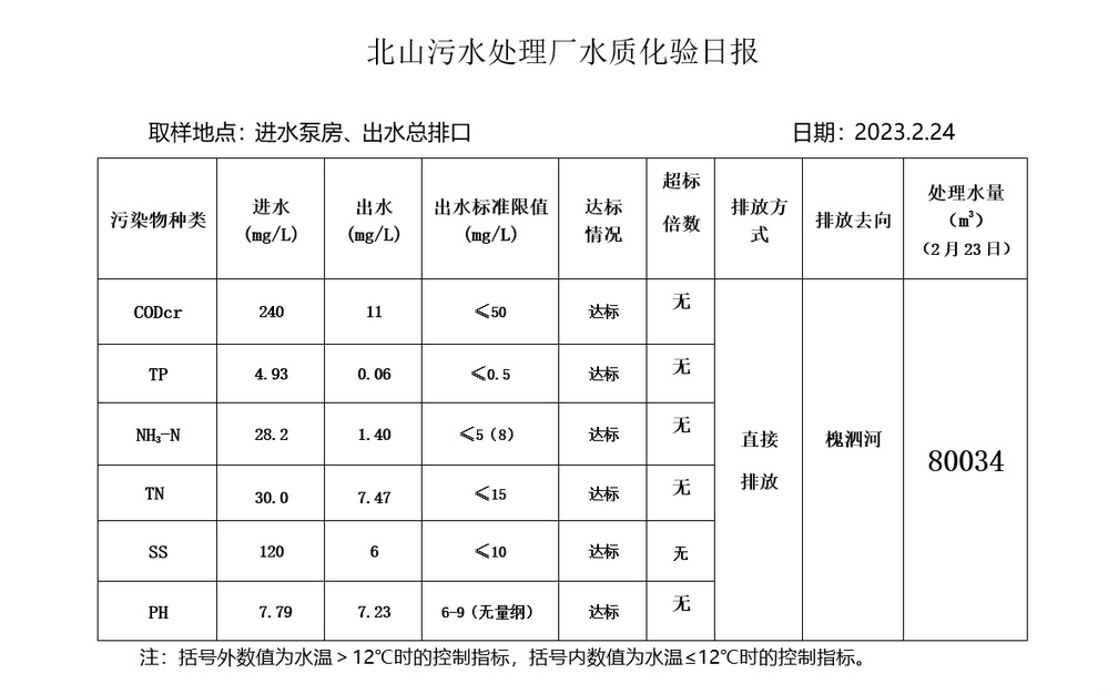 北山污水处理厂水质化验日报(2023.2.24)