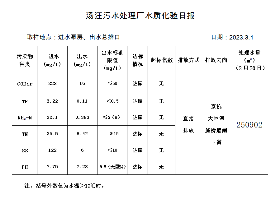 汤汪污水处理厂水质化验日报(2023.3.1)