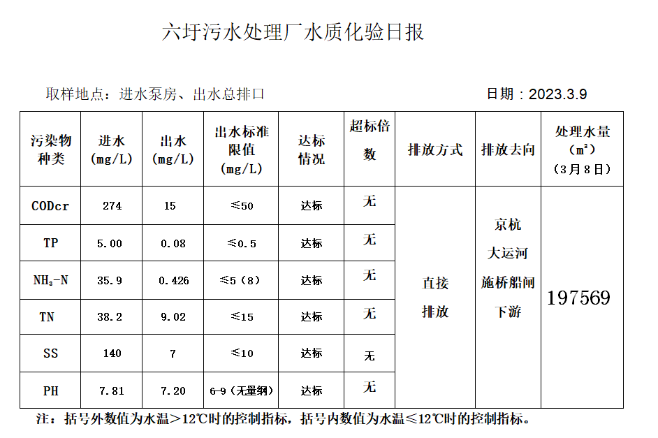 六圩污水处理厂水质化验日报(2023.3.9)
