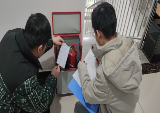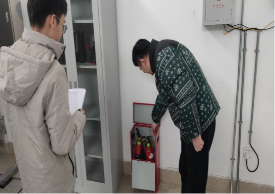 在检查现场,安全员仔细检查了综合楼、配电房、仪表间、脱水机房、电动车库等重点区域消防设备,仔细查验灭火器材配备及摆放是否符合规范,罐体粉末是否过期等问题,对可能存在的安全隐患列入清单,现已全部整改完毕。