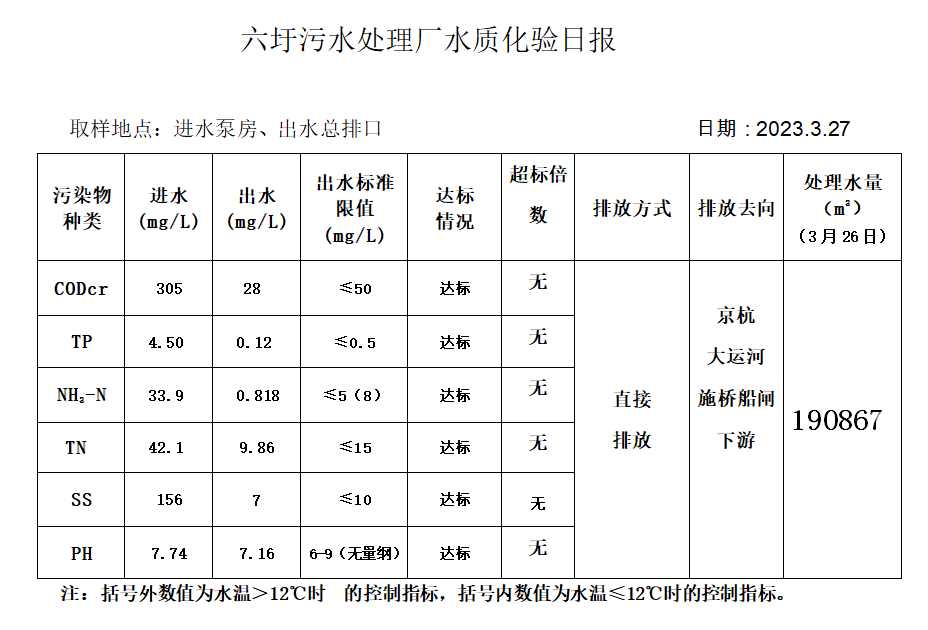 六圩污水处理厂水质化验日报(2023.3.27)