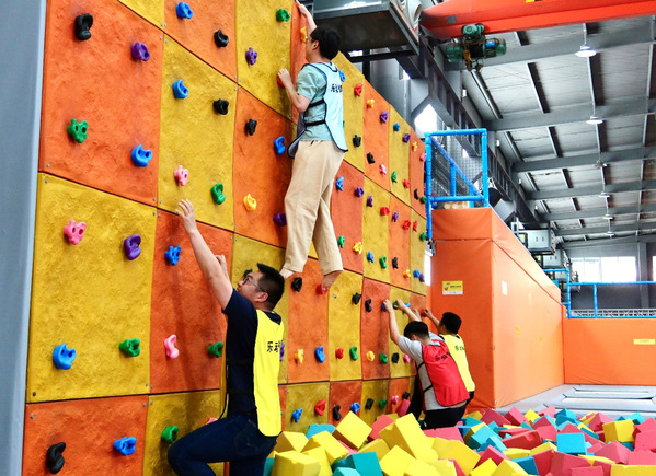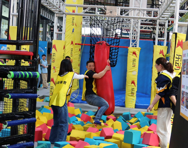 活动以素质拓展为主要内容,四支队伍在挑战“活力蹦床”、“梅花桩接力”、“海绵池攀岩”、“智勇冲关”、“攻占枕头山”等拓展项目的过程中,队员们通过有效讨论,合理、快速地做出决策,取长补短、团结协作完成共同目标。活动现场气氛热烈而又紧张,扣人心弦而又不失活泼,青年职工们在赛场上尽情挥洒着汗水,为队友摇旗呐喊,胜利时也会如孩子般在场上欢呼雀跃!