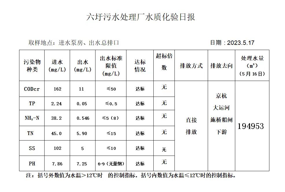 六圩污水处理厂水质化验日报(2023.5.17)