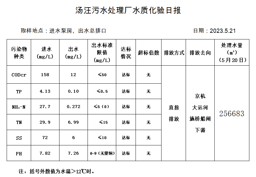 汤汪污水处理厂水质化验日报(2023.5.21)