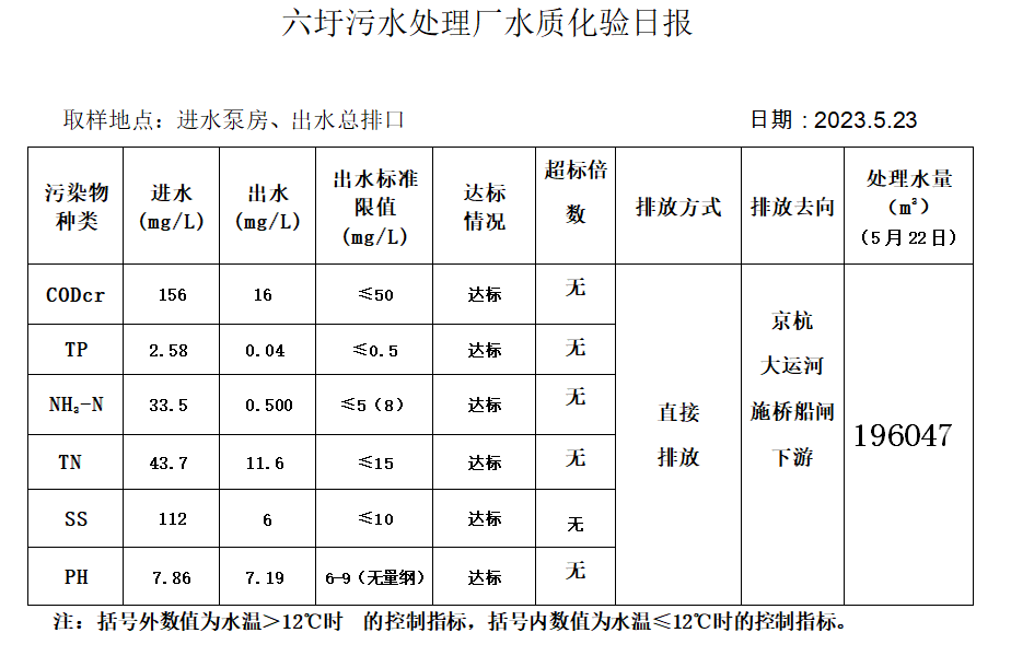 六圩污水处理厂水质化验日报(2023.5.23)