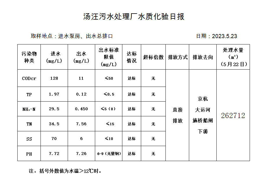 汤汪污水处理厂水质化验日报(2023.5.23)