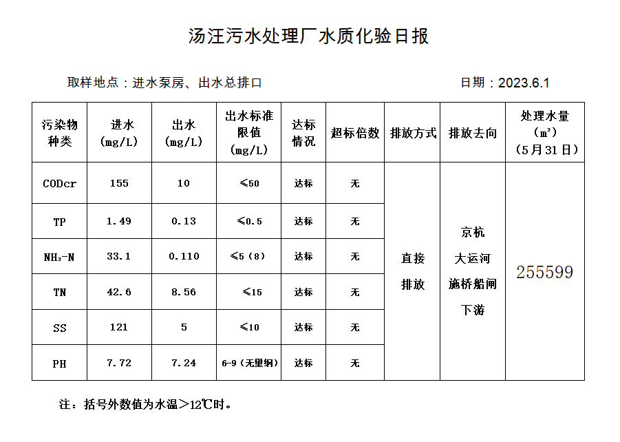 汤汪污水处理厂水质化验日报(2023.6.1)