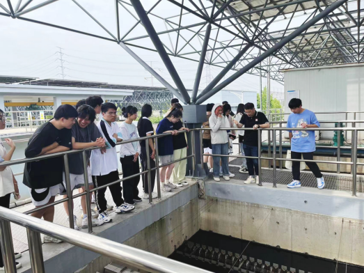 走进中控室,通过现场了解在线数据监控系统控制污水处理设备,高效的自动化系统给所有同学留下了深刻的印象,纷纷表示受益良多,最后,全体师生在厂区办公楼前合影留念,为本次参观之行划上了一个圆满的句号。