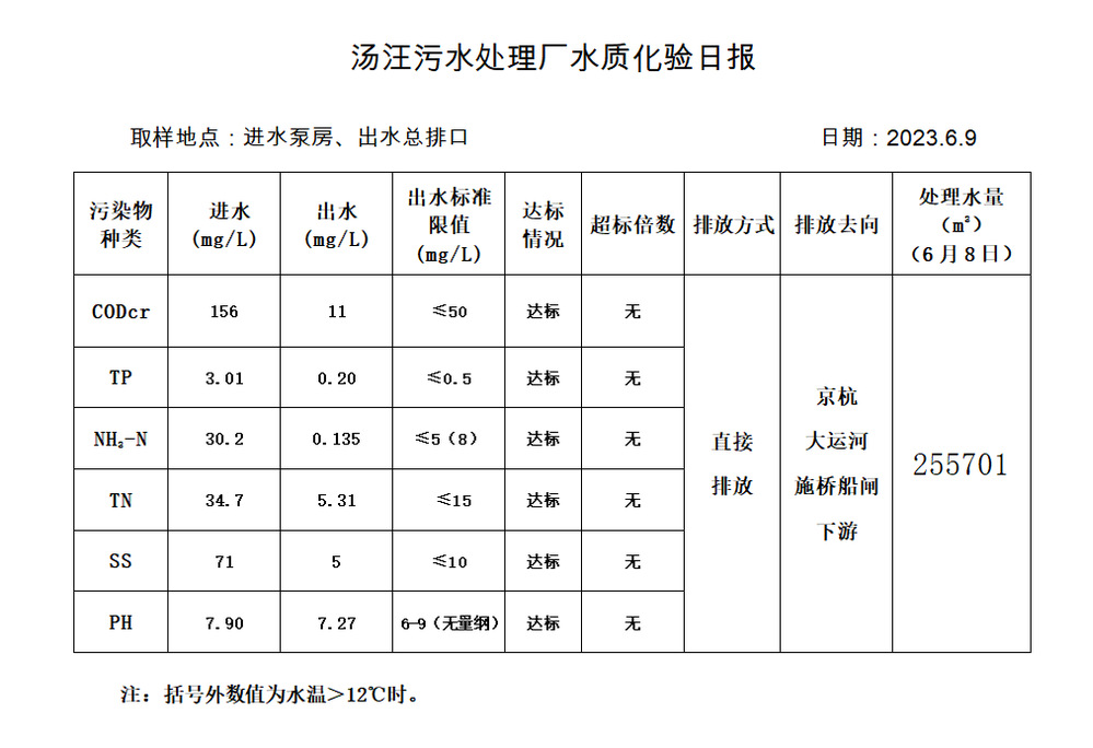 汤汪污水处理厂水质化验日报(2023.6.9)