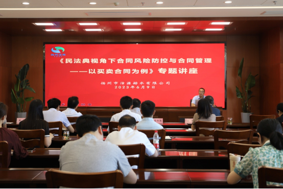为全面学习宣传贯彻习近平法治思想和党的二十大精神,提升职工法治素养,6月9日上午,洁源排水公司组织开展了《民法典》专题讲座。公司领导班子成员、中层干部和职工代表参加了本次活动。