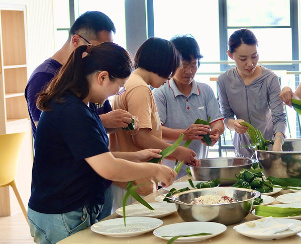 为了让大家更加深入了解传统文化,活动还设置了包粽子环节,飘香的粽叶包裹着友情,大家相互分享自己包的粽子,其乐融融。接下来进行了搭建通天塔和舞龙活动,队员们相互协作,用一根绳子,以最短的时间将箱子垒高,最后在舞龙活动中结束了本次的活动。