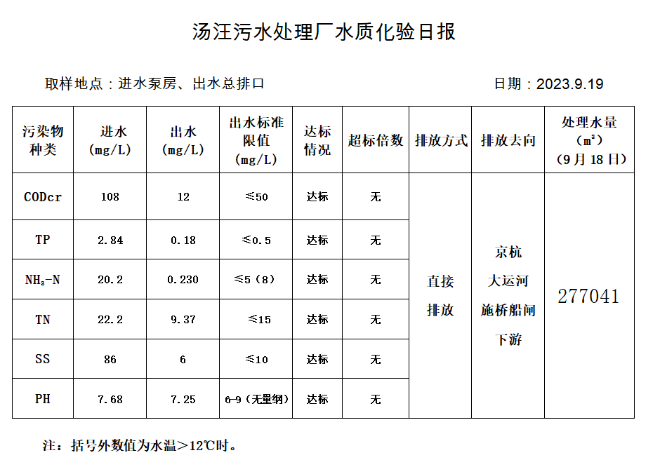 汤汪污水处理厂水质化验日报(2023.9.19)