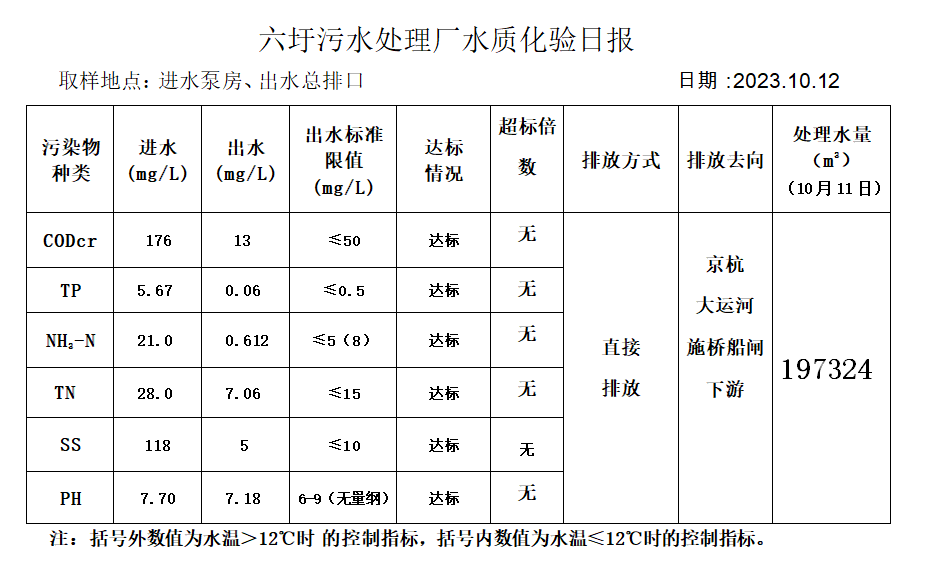 六圩污水处理厂水质化验日报(2023.10.12)