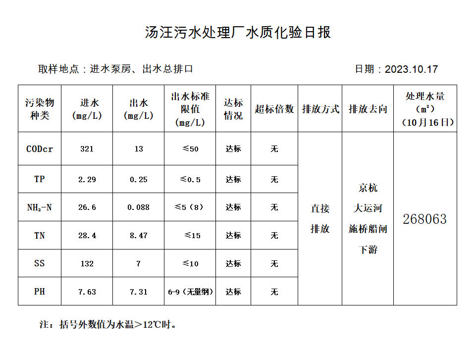 汤汪污水处理厂水质化验日报(2023.10.17)