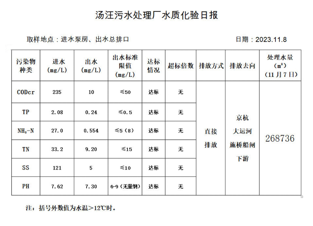 汤汪污水处理厂水质化验日报(2023.11.8)