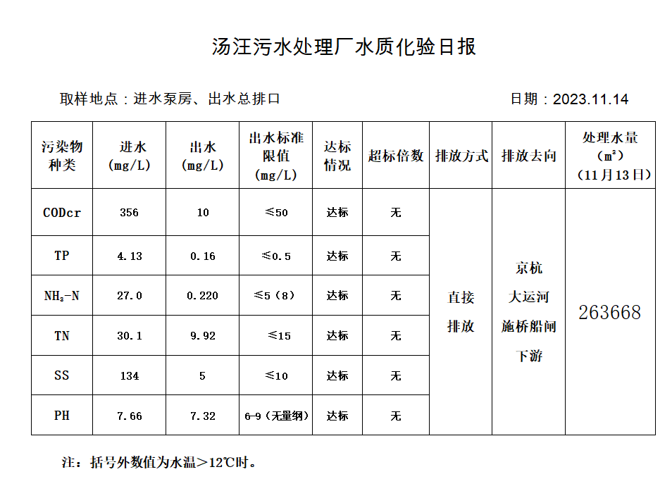 汤汪污水处理厂水质化验日报(2023.11.14)
