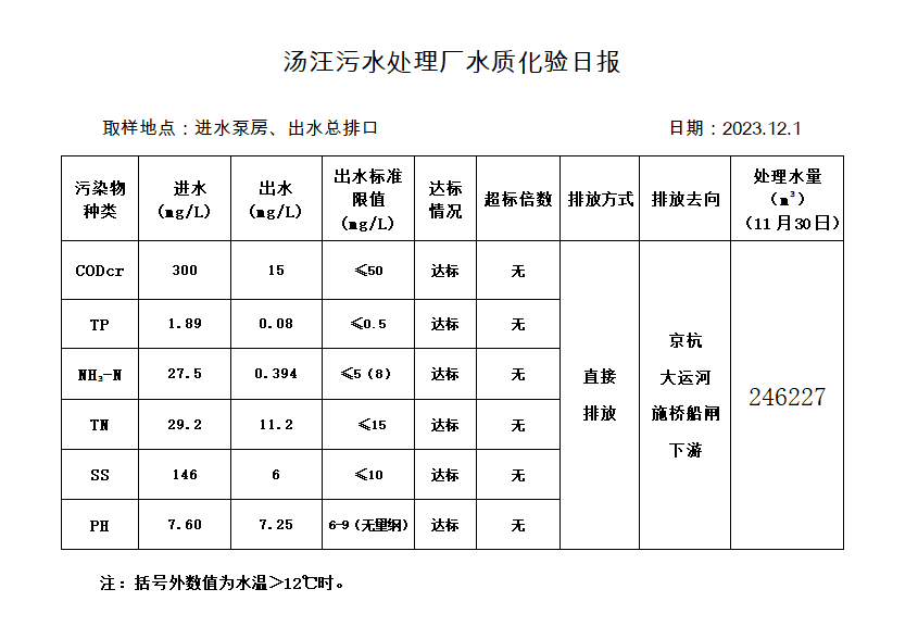 汤汪污水处理厂水质化验日报(2023.12.1)