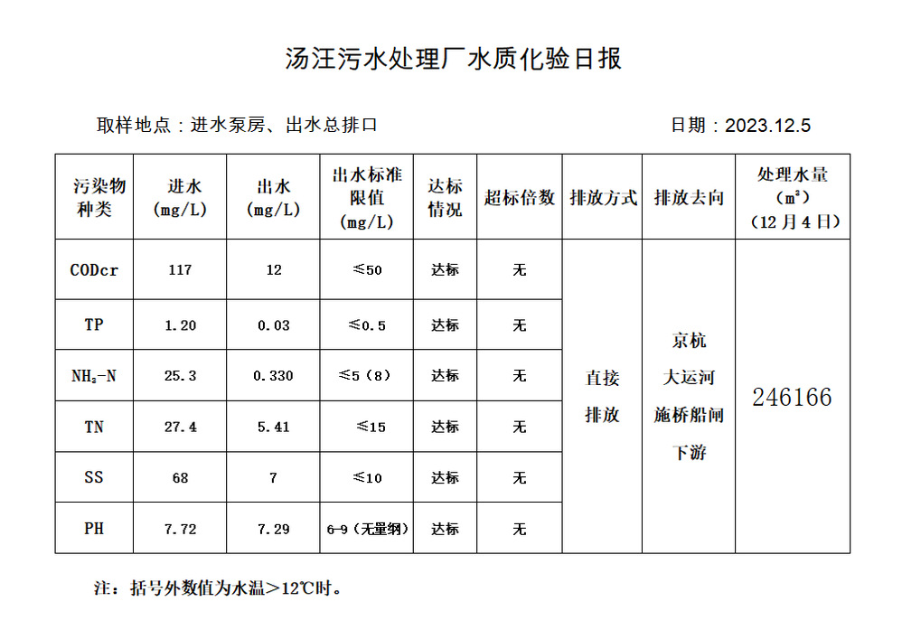 汤汪污水处理厂水质化验日报(2023.12.5)