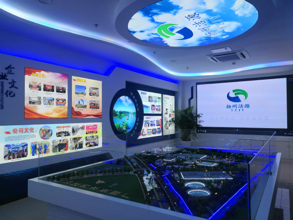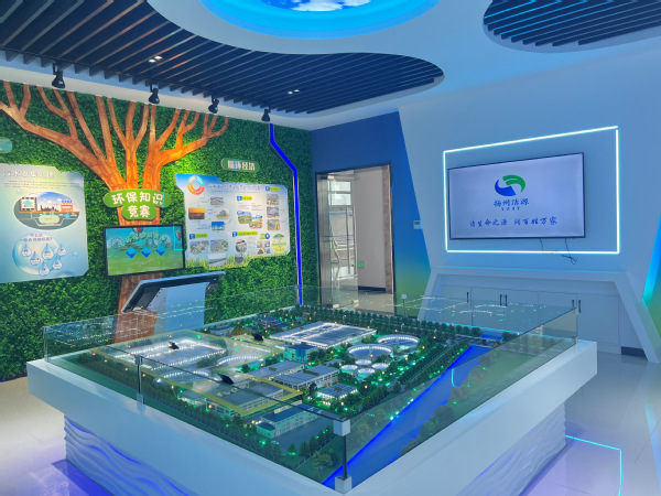 扬州洁源节水科教馆硬件设施由扬州洁源环境公司倾力打造,共设有1个总馆和3个分馆。室内展厅内设有2套厂区布局沙盘、3套宣传大屏、2套宣传滚动屏、1套人机互动触摸屏、1套交互式答题机等多媒体设施。室外设施主要涵盖污水预处理、生物处理和提标段处理、中水回用等污水处理设施。