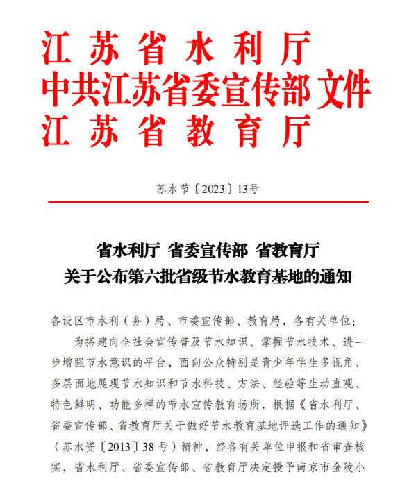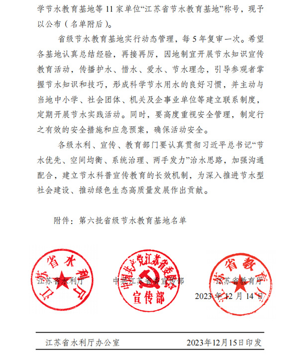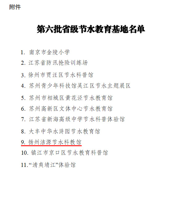 近日,由省水利厅、省委宣传部和省教育厅联合发文,扬州洁源节水科教馆顺利通过评选验收,成功入选第六批省级节水教育基地。