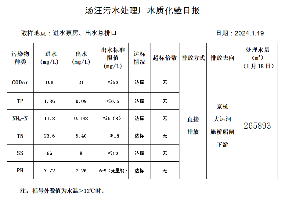 汤汪污水处理厂水质化验日报(2024.1.19)