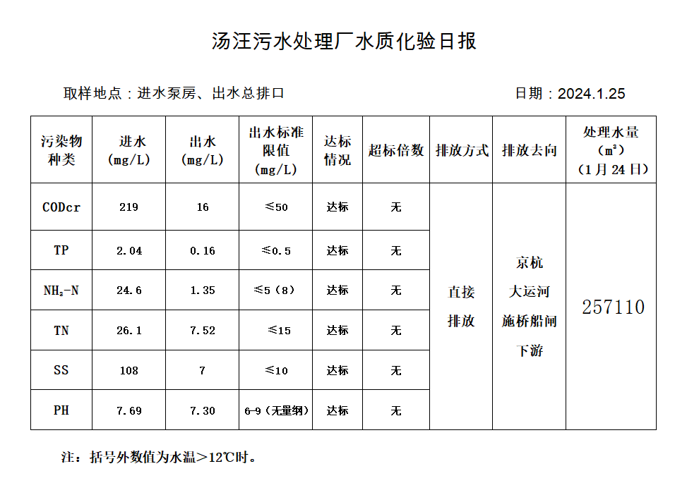 汤汪污水处理厂水质化验日报(2024.1.25)