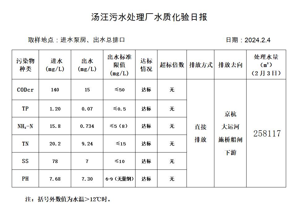 汤汪污水处理厂水质化验日报(2024.2.4)