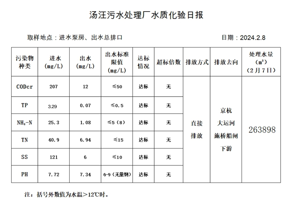 汤汪污水处理厂水质化验日报(2024.2.8)