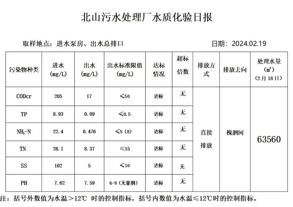 北山污水处理厂水质化验日报(2024.2.19)
