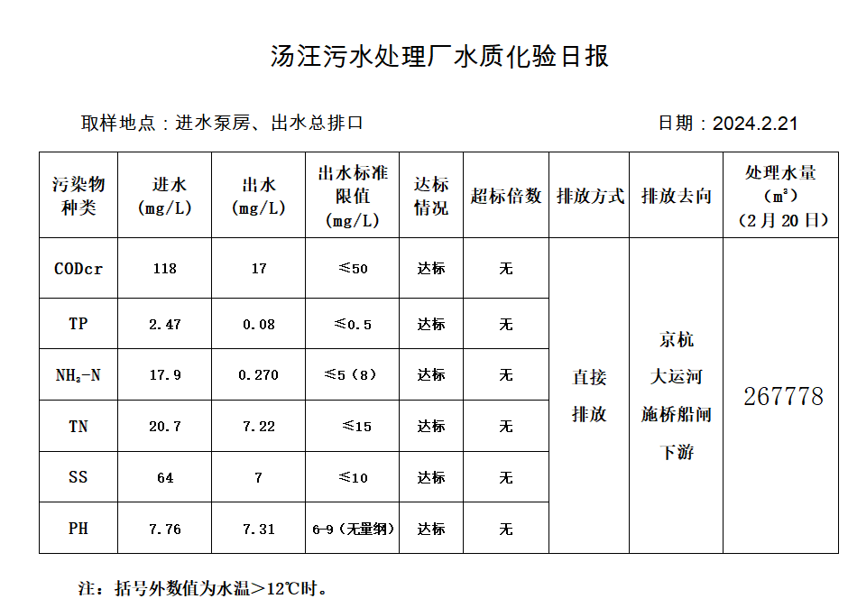 汤汪污水处理厂水质化验日报(2024.2.21)