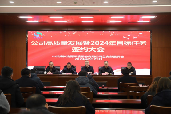 为扎实推进各项目标任务落实,强化责任担当,明确工作思路和发展方向,2月29日上午,洁源环境公司组织召开高质量发展暨2024年度目标任务签约大会,公司领导班子全体成员、全体中层干部及职工代表参加会议。
