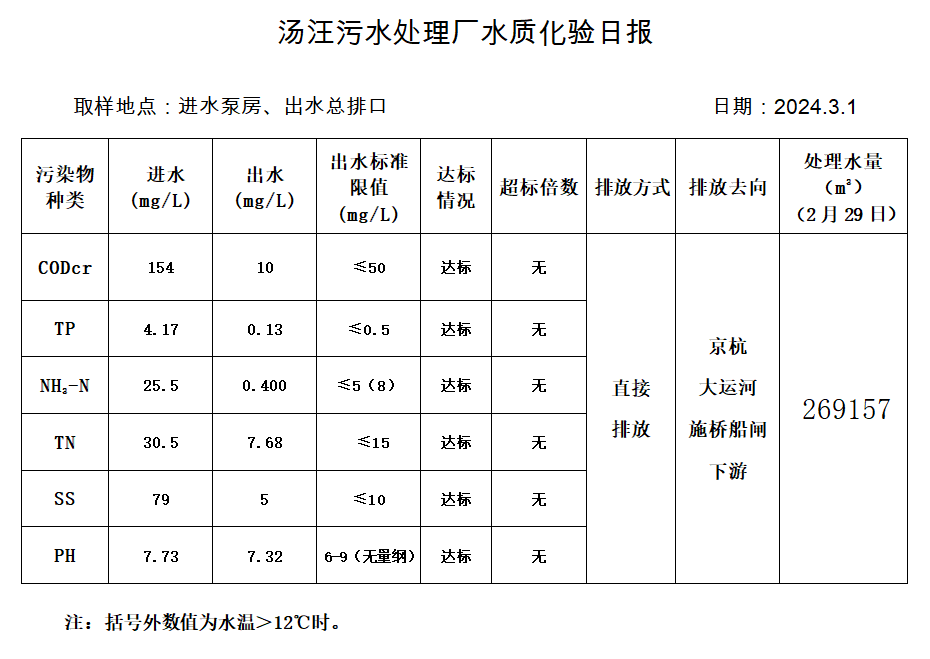 汤汪污水处理厂水质化验日报(2024.3.1)