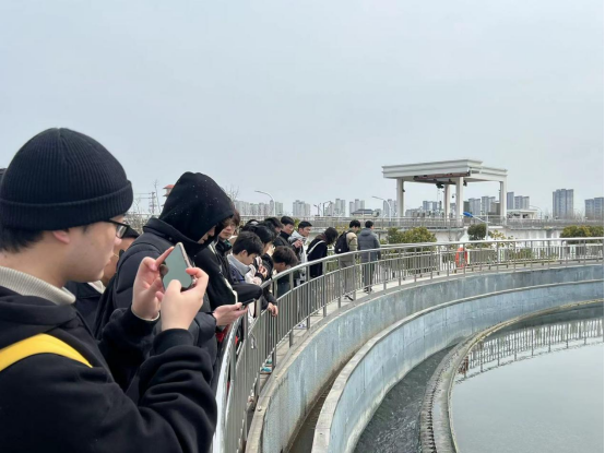 在工作人员带领下,师生们认真观看了各生产单元、环保综合展厅、中心控制室等生产场所,详细听取了污水来源,水质成分、处理工艺及出水用途等知识讲解,对厂区内部污水处理流程有了初步认识。来到高密度沉淀池,当看到浑浊的污水经过一道道程序,变成了清澈、明亮的出水,大家纷纷感叹污水处理工艺的设计高效,更直观感受到了污水处理与水环境保护的独特魅力。