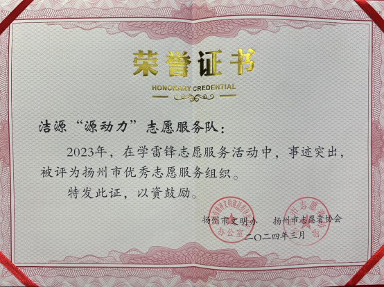 近日,由扬州市文明办、志愿者协会传来喜讯,洁源环境公司“源动力”志愿者服务队荣获扬州市“优秀志愿服务组织”称号。