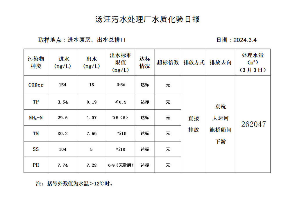 汤汪污水处理厂水质化验日报(2024.3.4)