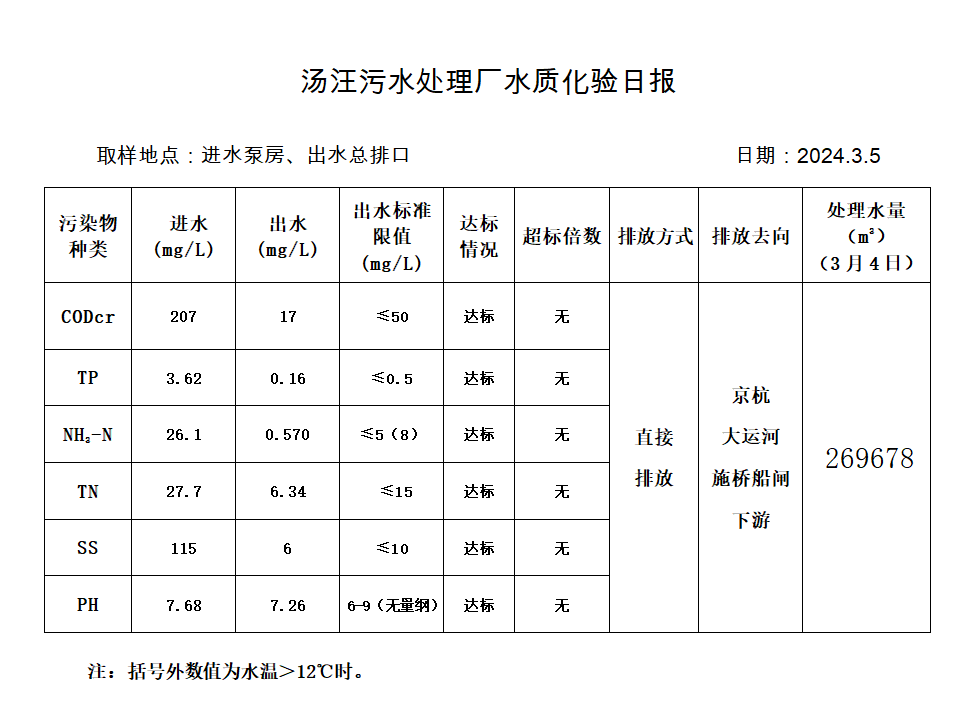 汤汪污水处理厂水质化验日报(2024.3.5)