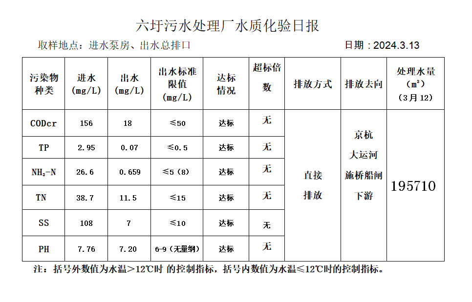 六圩污水处理厂水质化验日报(2024.3.13)