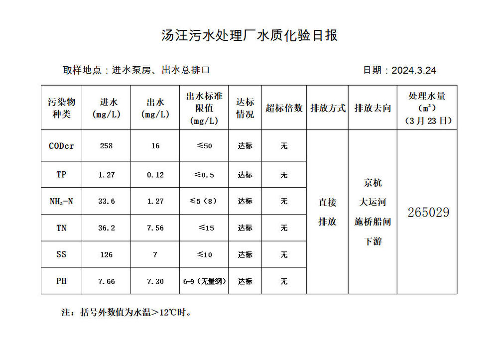 汤汪污水处理厂水质化验日报(2024.3.24)