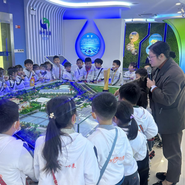 3月29日上午,扬州东方剑桥幼儿园的45名孩子们参观了洁源环境公司汤汪污水处理厂。在讲师的带领下,孩子们先后参观了解了汤汪污水处理厂一期、中控室和环保综合展示厅。