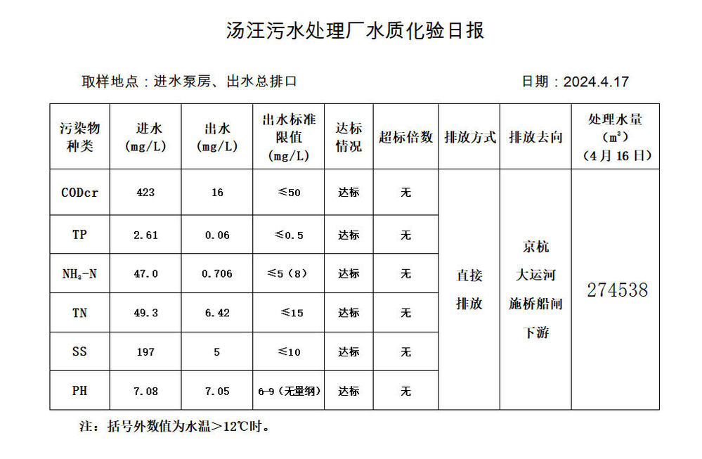 汤汪污水处理厂水质化验日报(2024.4.17)
